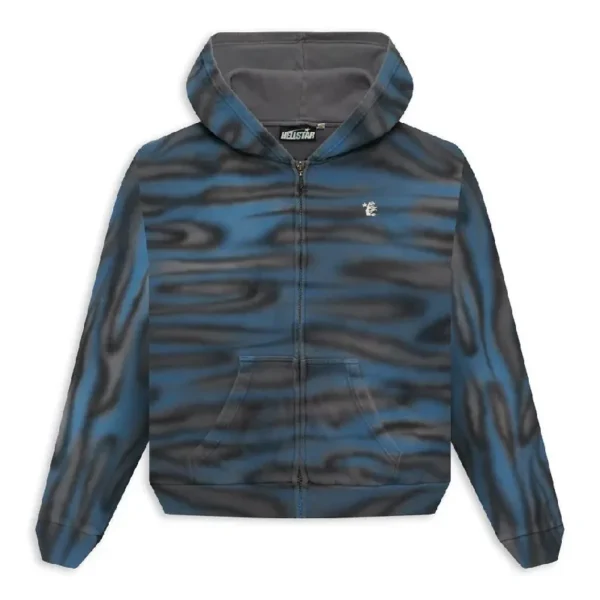 Blue Hellstar Classic Logo Airbrush Zip-Up Hoodie