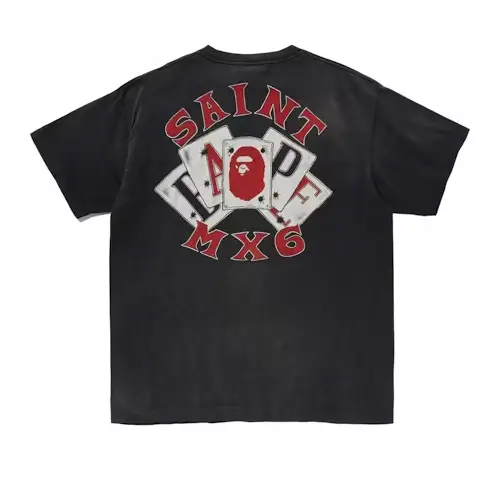 Whether you’re a dedicated streetwear enthusiast or simply looking to add a touch of rebellion to your wardrobe, the Charcoal BAPE x Saint Mxxxxxx Guns Tee is an essential must-have. Don’t miss out on this highly sought-after collaboration. Order yours today and experience the perfect fusion of style and attitude.