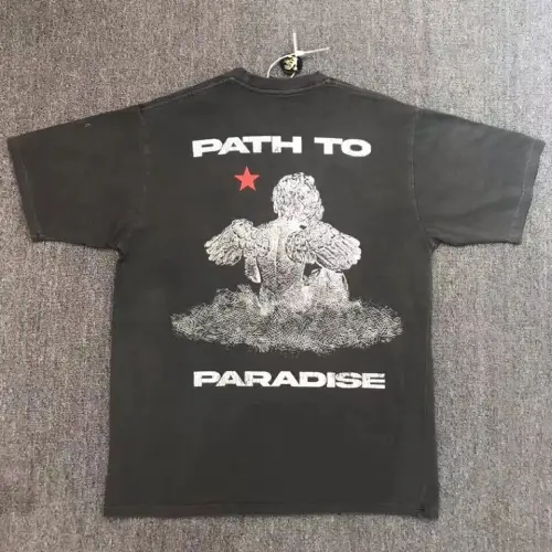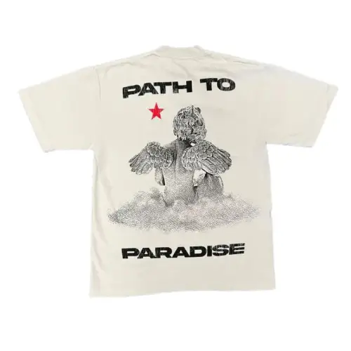 Crank up your edgy style with the Hellstar Path To Paradise T-shirts. This graphic tee features bold “Hellstar” text on the front. But flip it around, and you’ll find a surprising twist—a peaceful angel perched on the back, hinting at your inner peace. This short-sleeved tee is perfect for everyday wear. It is available in classic black and cream colors.
