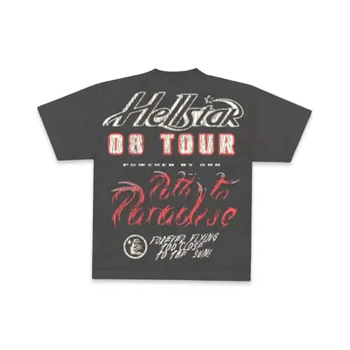 Channel your inner rock goddess with this Black Hellstar Records Metal Angel T-shirt. The front features a bold graphic—a soaring angel with the words “Path to Paradise” and “08 Tour.” The back continues the theme with a statement print: “Path to Paradise, Hellstar 08 Tour, Forever Flying Too Close to the Sun.” This short-sleeved classic crewneck expresses your love for rock and Hellstar’s rebellious spirit.