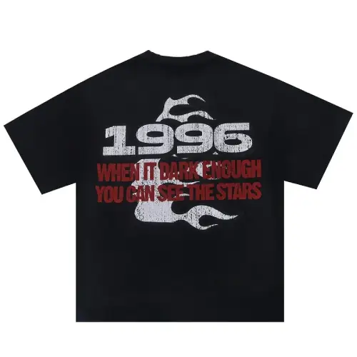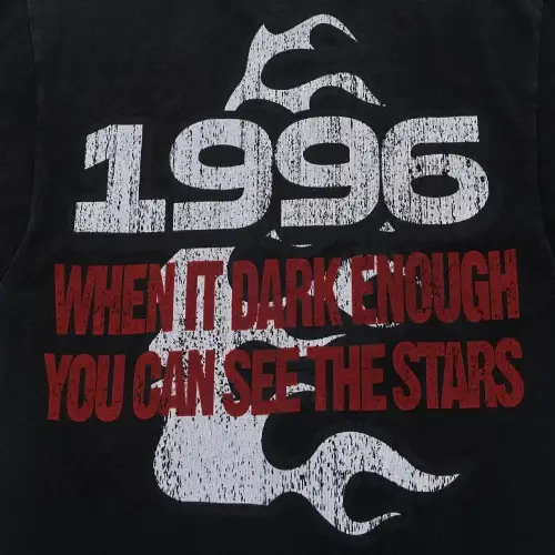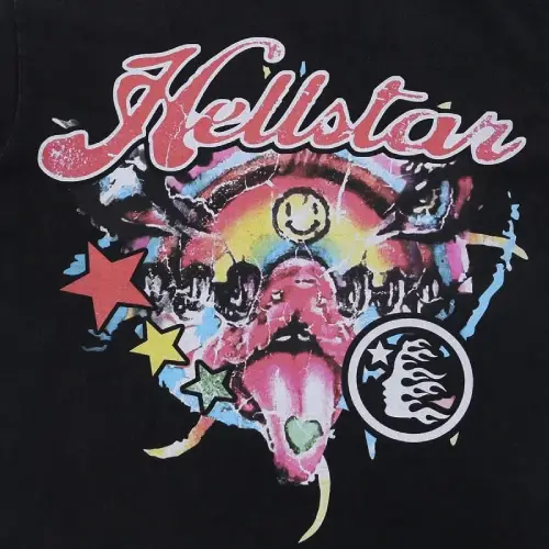 This Black Hellstar 1996 Independence Day T-shirt Tee features a Hellstar logo with a powerful message on the back: “When it’s Dark Enough, You Can See the Stars.” The front showcases a vibrant rainbow & Hellstar logo and additional designs, all printed in sharp contrast on a classic black tee. With a classic crewneck and a relaxed fit, it pairs well with leggings, jeans, or shorts for a versatile look.