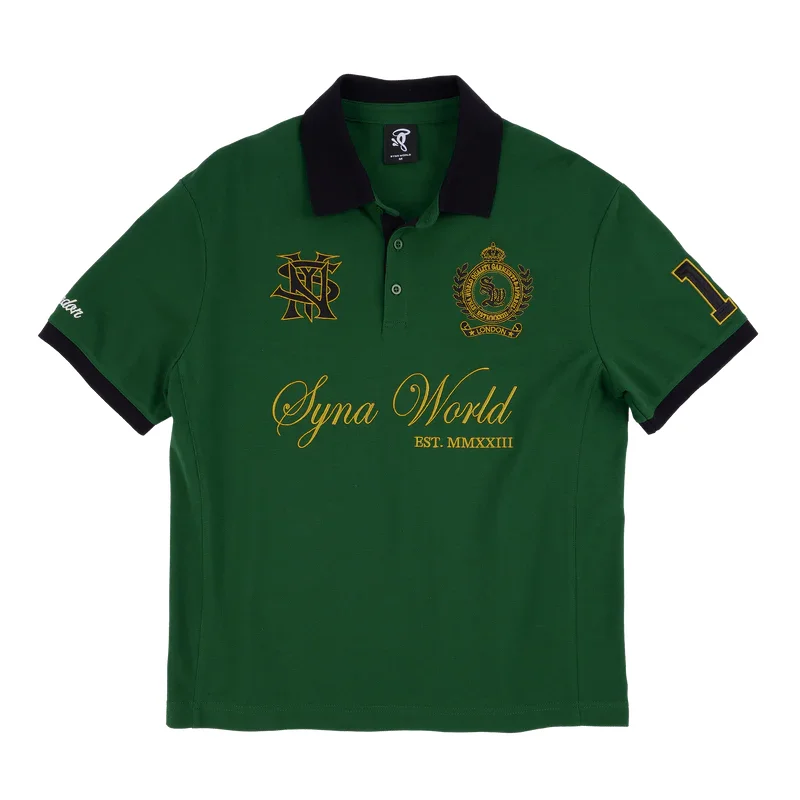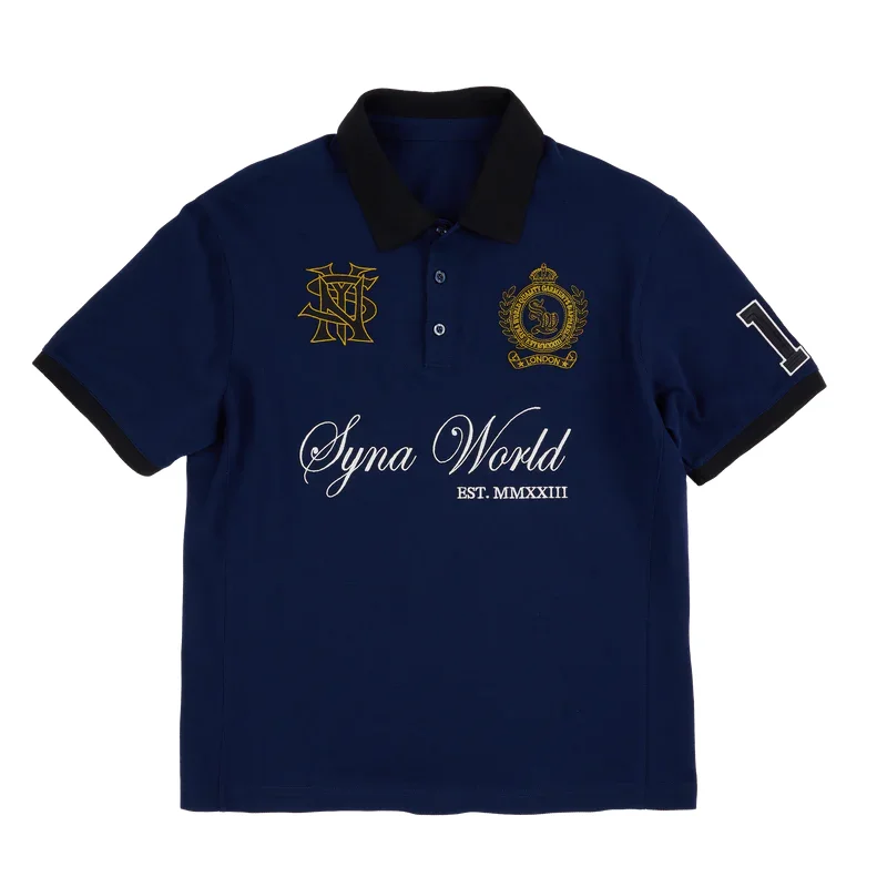 Command attention with the SYNA World SKL of SYN Polo Shirt. Cut from 100% cotton, it delivers a smooth, structured feel that stays sharp all day. The front features bold embroidered crests and the signature “Syna World EST. MMXXIII” script for a standout look. A classic polo collar adds refined edge, while the number detail on the sleeve brings a sporty twist. Sleek, versatile, and full of attitude—this polo is made to elevate your everyday style.