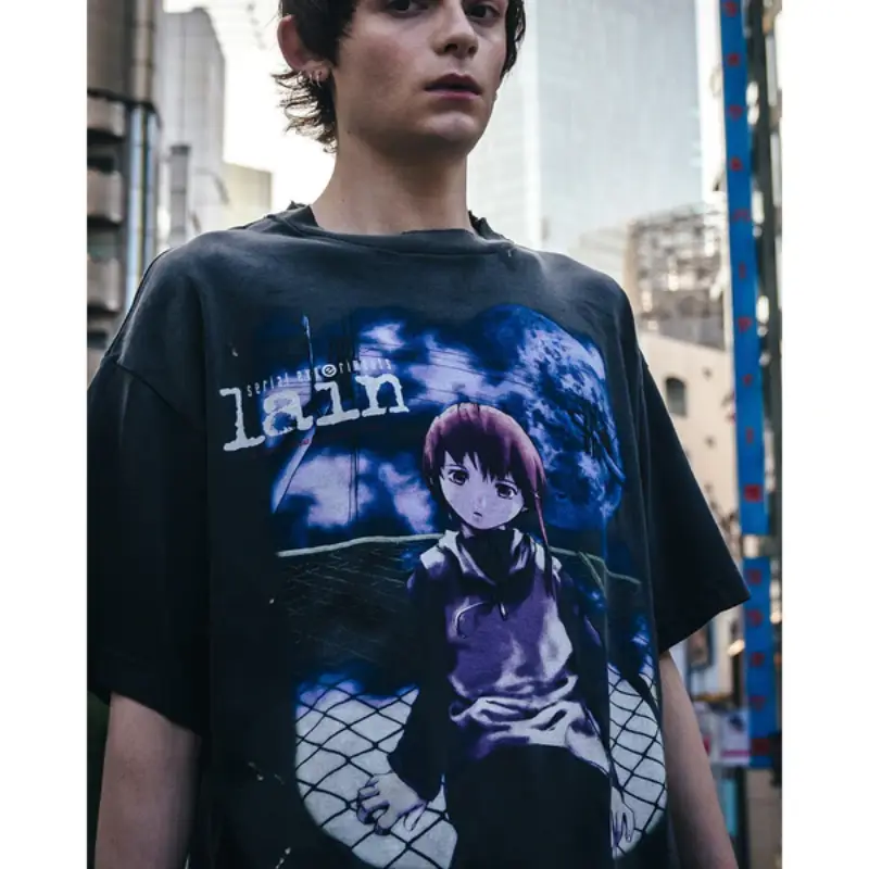 We don’t just print tees—we build cult signals. The Black SAINT Mxxxxxx x Serial Experiments Lain x Geeks Rule Tee is a wired dive into digital chaos. Featuring Lain in full isolation mode and the iconic “Close the world, open the next” code stamped on the back, this piece hits differently. Heavyweight cotton-washed black, oversized fit—distressed to feel like it’s already lived through something. Designed with Geeks Rule to fuse underground anime culture with SAINT-level disruption. It’s not made for trends and is made for the ones who know. Tap in, drop out, and wear the static.