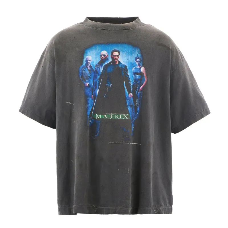 Our Black Saint Mxxxxxx x The Matrix Logo Short Sleeve T-shirt brings iconic cinema into bold everyday style. Crafted in soft, durable cotton, this relaxed-fit tee comes in a washed black base. A striking full-color Matrix graphic sits front and center, showing the crew in vivid detail. Subtle distressing adds a lived-in, vintage edge, making every piece feel unique. A must-have for fans of The Matrix and collectors of standout graphic tees.