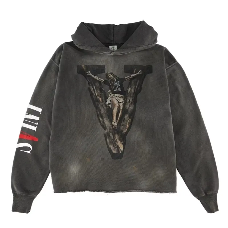 The Black Saint Mxxxxxx x Vlone Hoodie blends an untamed attitude with divine rebellion. Heavy-washed cotton meets hand-weathered details for that battle-worn feel. A bold crucifix “V” graphic on the front, “Bless Me Father For I Have Sinned” on the back. SAINT appears to be printed vertically along the arm. Fitted cuffs lock in the shape, keeping it sharp and clean. Pair it with your favorite denim or streetwear essentials to complete your look.