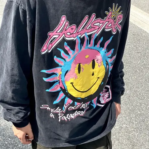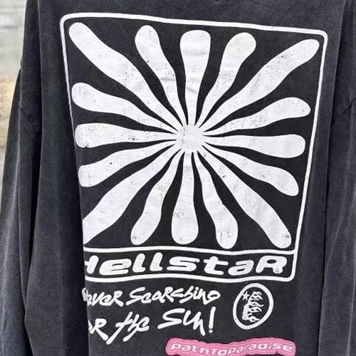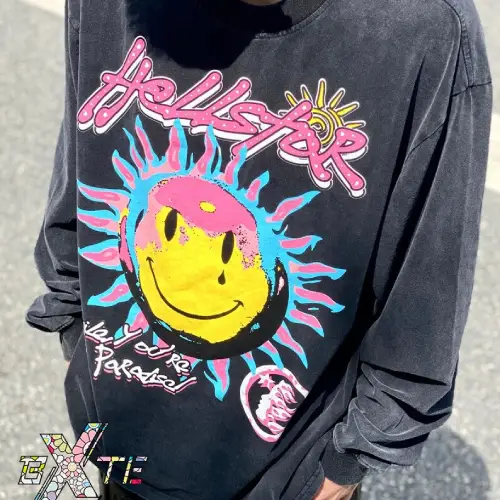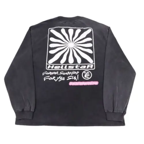 The Smile You’re in Paradise Hellstar Long Sleeve Shirt! This long-sleeve tee features a bold, happy sun graphic on the front with a friendly smile. The back continues the good vibes with a square sun and the words “Forever Searching for the Sun” a message of optimism. A path leading to paradise adds to the positive imagery. The front and back are decorated with the Hellstar logo. This shirt is perfect for anyone who chases the sun and embraces paradise wherever they find it.