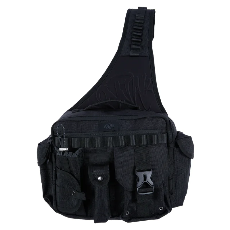 Our Black SYNA World SYNA Garde Bag is built to carry weight with purpose. We used durable ballistic nylon and finished it with a heat-embossed SYNA graphic for texture that hits. Inside, there’s a lockable zip to keep your essentials secure. The 90cm strap adjusts easy, held down by a gunmetal bullet buckle with signature branding. A woven patch with reflective jacquard adds a final flash. Sized at 28cm by 32cm, it’s compact but never quiet. This is everyday armor—ready when you are.