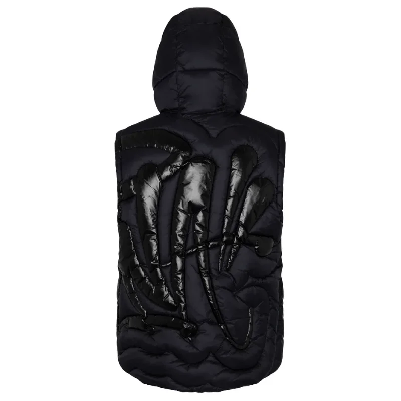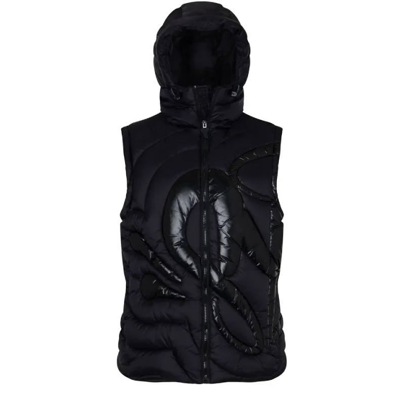 Our Black SYNA World XL Logo Zipper Gilet is made to layer with intent and presence. We used 100% matte polyamide with 370GSM weight and 500 down power for warmth without the bulk. The oversized SYNA logo makes a clear statement from front to back.