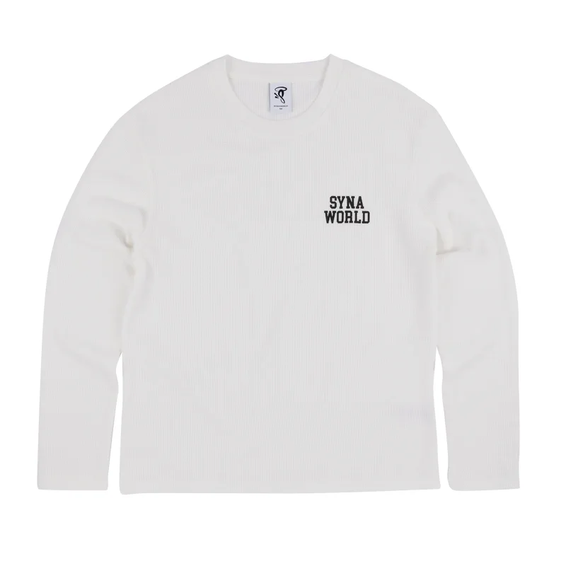Stay effortlessly cool in the SYNA World Waffle Long Sleeve Tee. Its textured waffle knit adds depth and character, while the subtle SYNA World logo on the left chest brings a clean, signature touch. Made from a soft cotton blend, it feels cozy yet lightweight—ideal for layering or wearing on its own. With a relaxed fit and classic crew neckline, this tee blends comfort with understated streetwear style.