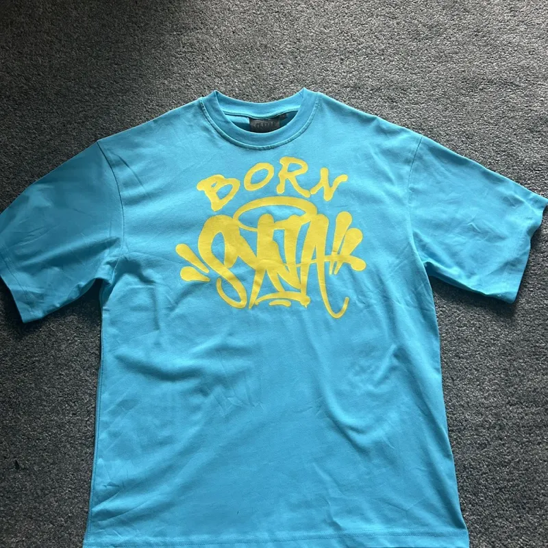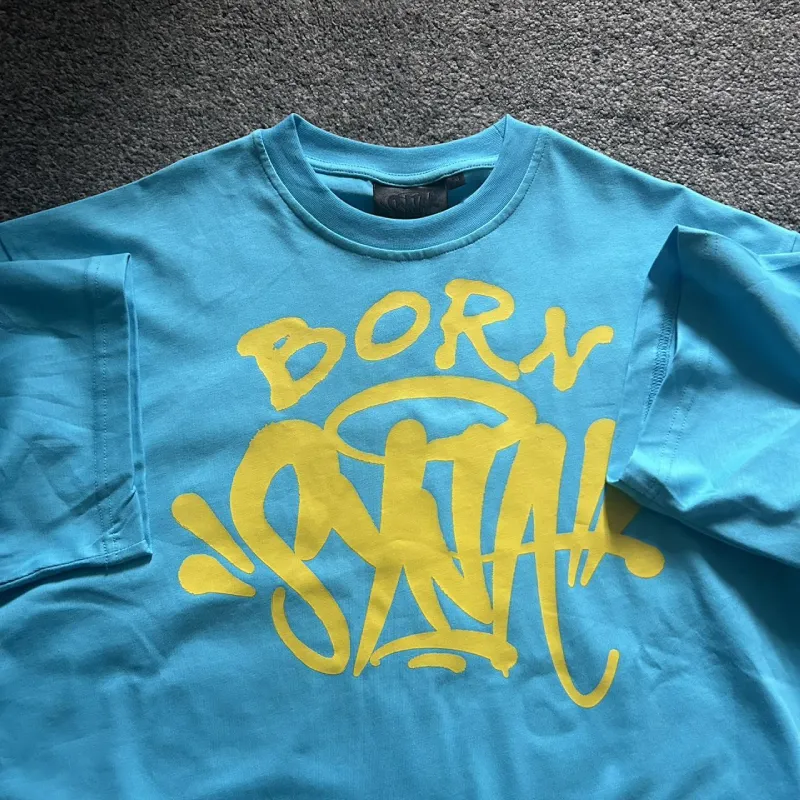 Welcome to the world of Syna with our Blue Syna World Born Syna T-shirt. This shirt features a striking blue hue that pops with every outfit. Made from premium cotton, it delivers unmatched comfort and breathability for all-day wear. The bold “Born Syna” graphic symbolizes creativity and connection, making it a statement piece in any wardrobe.
