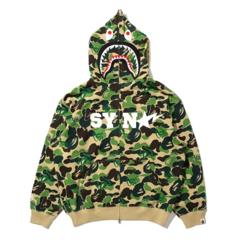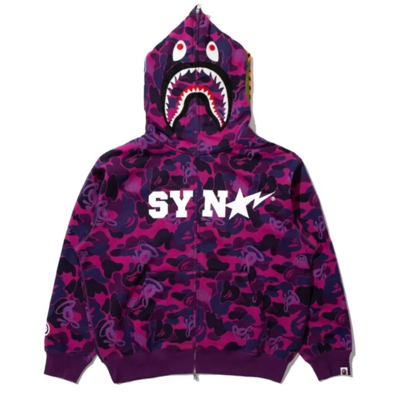Step up your streetwear game with the Camo SYNA World x Bape x Spotify Spark Tracksuit. Crafted from premium cotton, this tracksuit blends comfort with bold style, featuring a striking camo pattern. The front proudly showcases the iconic “SYNA logo in crisp white, while the hood flaunts Bape’s signature shark design for that unmistakable edge.