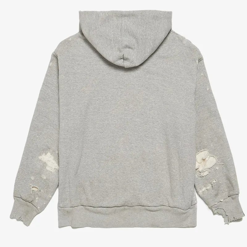 Gray Saint Mxxxxxx Distressed Patched Thermal Hoodie