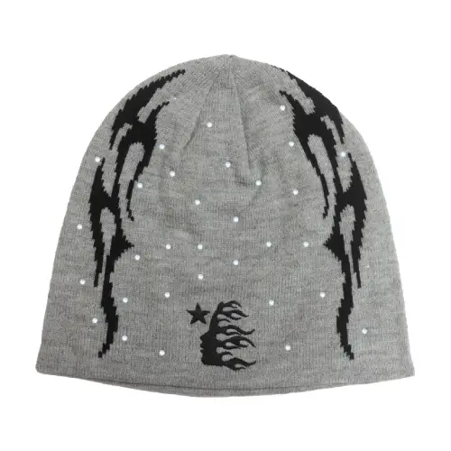 Grey/Black Rhinestones Hellstar Flame Beanies