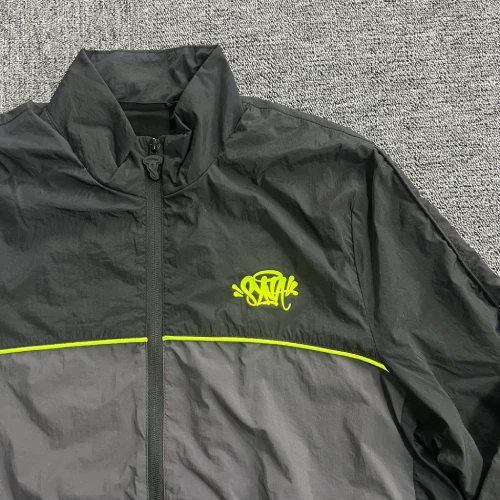 Elevate your streetwear game with our Grey/Black/Volt Syna World SYNA Logo Zip-Up Shell Tracksuit. The bold and dynamic jacket features our iconic SYNA logo printed prominently on the side. Zip up to stay warm and dry, and stash your essentials in the two convenient front pockets.