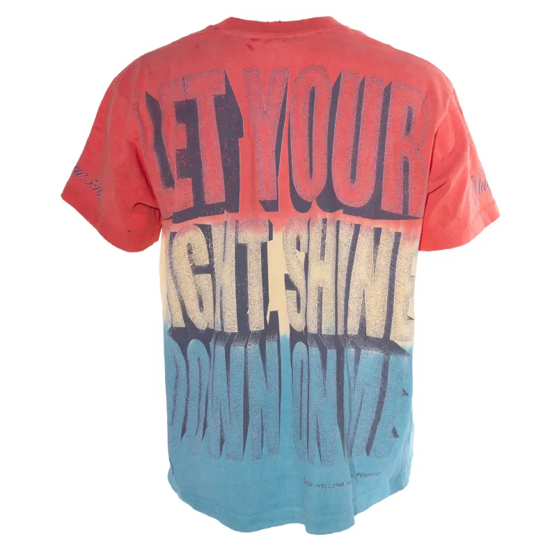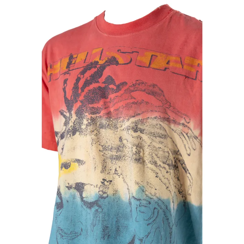 The Multicolor Hellstar Studios Rasta T-Shirt stands out with its custom-milled cotton and soft, breathable feel. A unique tie-dye wash and potassium spray finish make each piece one of a kind. Hellstar graphics are screen-printed on the front and back, adding edge and personality.