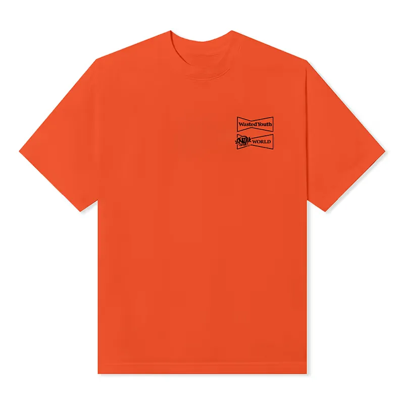 Dive into a world of vibrant energy with the Orange SYNA World x VERDY Wasted Young COCO Tee. These are Crafted with premium materials and a bold orange hue. This tee exudes youthful vitality. The eye-catching “Wasted Young” graphic, designed by VERDY, adds a rebellious flair.