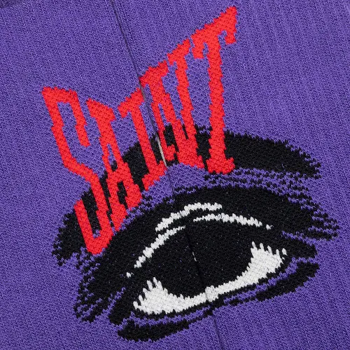 The purple Saint Michael Eye Socks’s unique design features a head-turning eye graphic alongside the brand’s signature stitching. Crafted from a comfortable cotton, polyester, nylon, and elastane blend, these crew socks boast ribbed detailing for a secure and stylish fit. Don’t just walk; strut with these Saint Michael eye-catchers. Composed of cotton, polyester, nylon, and elastane. Ribbed detailing is seen throughout, while the stitched branding and additional imagery wrap up the overall look.