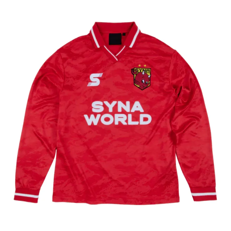 Our Red/White SYNA 23 Footy Jersey blends classic sports energy with everyday style. It is made from soft cotton fabric that keeps things breathable and comfortable all day. The relaxed fit makes it effortless, while ribbed cuffs add a structured touch.
