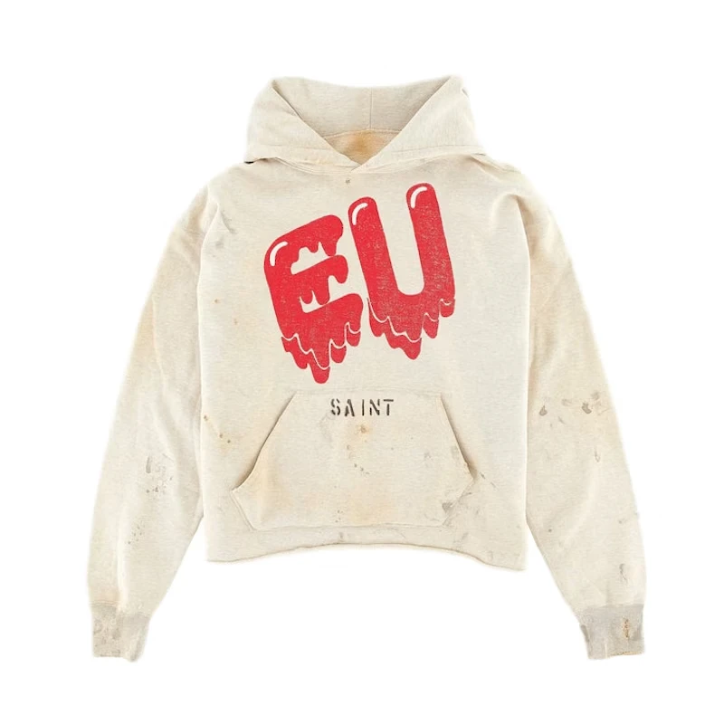 Our Beige Saint Michael x Emotionally Unavailable Hoodie is crafted for those who wear their heart out loud. Made from 100% premium cotton, this hoodie features a bold red “EU” print on the front and a striking heart graphic on the back—symbols of raw emotion and street-ready style. We created this piece to reflect fearless individuality and connection. Whether layered or worn solo, our hoodie makes a statement without saying a word.