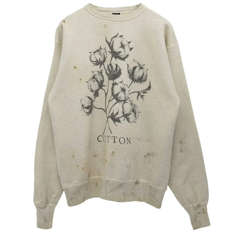 Step into style with the Grey SAINT Mxxxxxx × Denim Tears Cotton Sweatshirt — where heritage meets modern streetwear. Crafted from heavyweight cotton, it offers a relaxed fit that’s perfect for everyday wear. The front features printed flowers and the word “COTTON” in bold, while the back showcases a powerful printed message in the Language of Flowers — merging visual impact with meaning. A versatile shade of grey makes this sweatshirt easy to style with anything from denim to joggers.