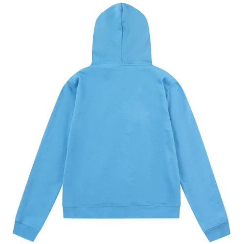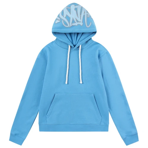 Make an impression with the Sky Blue SYNA World SYNA Logo Sweatsuit. Made from a cotton/polyester blend, it’s soft, durable, and perfect for all-day wear. The bold ‘SYNA’ print on the hood and the back of the pants adds a striking touch to this classic look. Featuring a drawstring hood and waistband, it offers a customizable fit for maximum comfort.