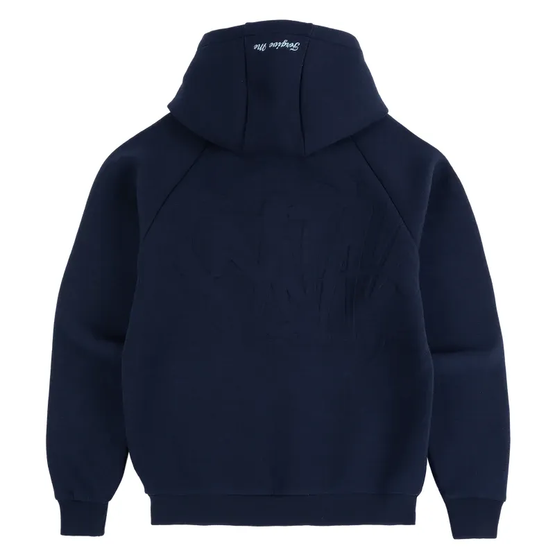 The back features an embossed SYNA logo applied in a tonal finish, creating a subtle yet textured statement. Contrast internal detailing completes the design, resulting in a piece that offers a standout, minimal style. The Defy Neoprene Hood is available in both navy blue and red color options.