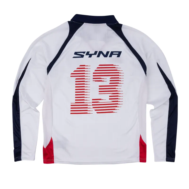 Step into the game with the SYNA World DVL Footy V2 Shirt. This long-sleeve football top channels classic vintage vibes with its V-neck and collar, perfect for a casual yet standout look. The iconic devil emblem and numbered ’13’ give it a bold, unique edge. Intricate paneling and careful attention to detail elevate the shirt’s design, while soft cotton ensures comfort all day.