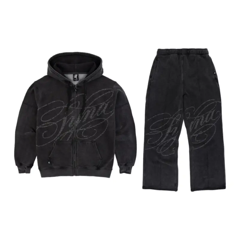 Elevate your streetwear game with the SYNA World Faded Script Zip-Up Tracksuit, crafted for ultimate comfort and style. Made from 420gsm loopback cotton, this oversized tracksuit features a denim-look faded hood and joggers for a relaxed, baggy fit.