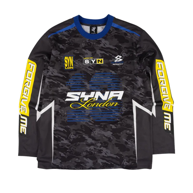 Distinctive silicone prints on the front and arms offer a tactile feel, while sublimated and intertwined logos add depth to the design. Finished with an embroidered SYNA neck logo and the iconic Race Number 13, this jersey is available in Black and White, perfect for a bold and functional look.
