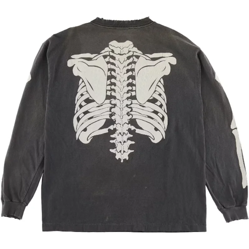 Elevate your streetwear game with the Vintage Black Saint Mxxxxxx x VLONE Bone L/S T-Shirt. Crafted for those who embrace bold style, this long-sleeve tee features a striking bone graphic that embodies raw energy and rebellion. The premium cotton construction ensures all-day comfort, while the relaxed fit delivers effortless street-ready vibes. Designed with exclusive VLONE branding, this piece merges edgy aesthetics with timeless appeal. Whether you’re layering up or rocking it solo, this tee speaks for itself.