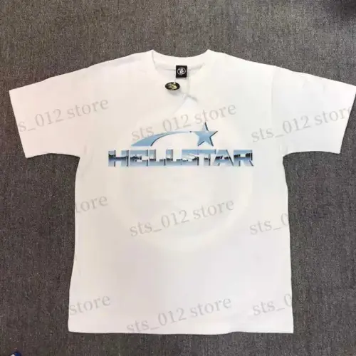 Rock your streetwear style with the White and Black Hellstar Studios Capsule 7 T-shirt. This black cotton tee ensures all-day comfort. The classic crewneck adds a timeless touch. It features a blue Hellstar sports logo on the front and a larger, powerful Hellstar logo on the back, showcasing your fandom. This tee represents the Capsule 7 collection with undeniable style.