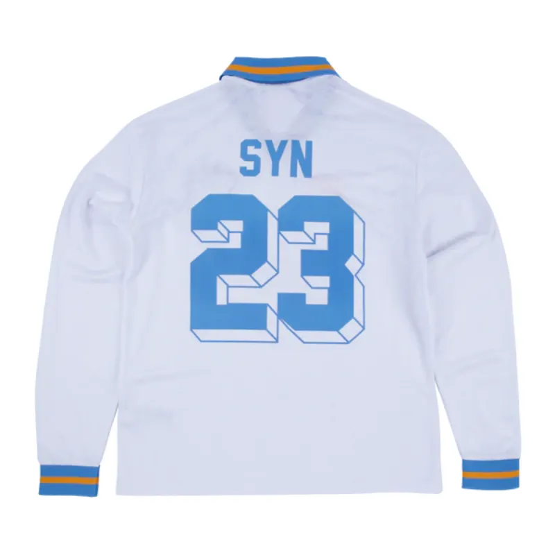 The White/Blue SYNA 23 Footy Jersey brings a fresh take on classic sportswear. It is designed in a crisp white and blue colorway for comfort and style. Lightweight, breathable cotton keeps you cool whether you’re on the move or kicking back.