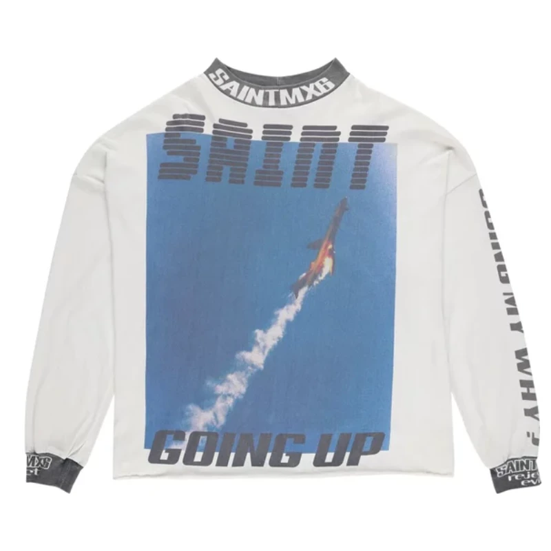 Crafted from premium materials, this long-sleeve tee offers exceptional comfort and durability. The clean white canvas provides the perfect backdrop for the distinctive graphics, showcasing the artistry of both Forsomeone and Saint Michael. The “Going” design adds a touch of subtle sophistication.