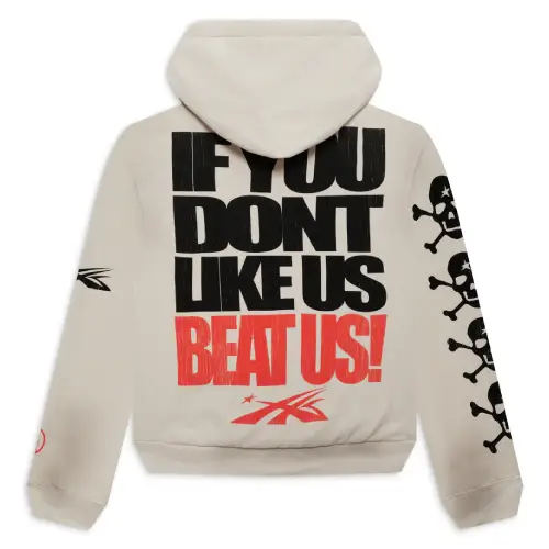 Want a tracksuit that’s both comfy and confident? Rock the White Hellstar If You Don’t Like Us Beat Us Tracksuit! This white tracksuit keeps you comfy all day long. The white color looks fresh and clean. Plus, the bold message on the front lets everyone know you’re not afraid of a challenge! Perfect for Hellstar lovers or anyone who wants a unique tracksuit.
