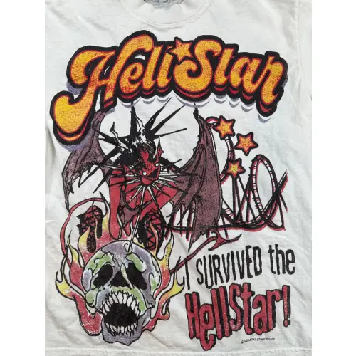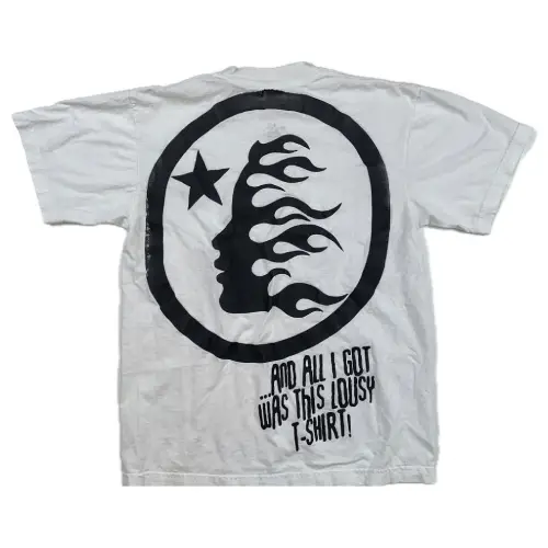 Conduct your inner monster with the White Hellstar Studios Capsule 3 T-shirt! This graphic tee features a battle-worn monster boasting its victory over Hellstar on the front. The back reads, “And all I got was this lousy t-shirt,” beneath the Hellstar logo. This Hellstar Capsule 3 collection piece is a must-have for any fan.