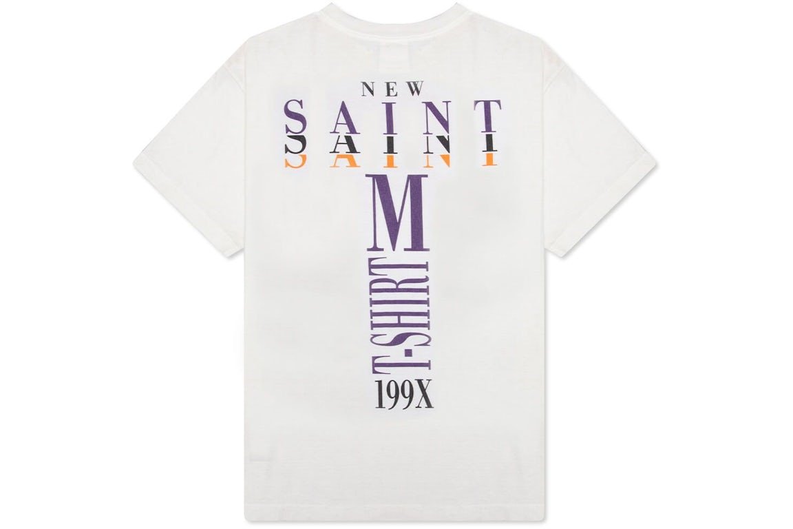 The White Saint Michael 2021 T-shirt brings timeless style with a fresh twist. It showcases the iconic Saint Michael branding. This tee is made from soft, high-quality cotton for ultimate comfort. Its clean white color adds versatility, making it easy to pair with any outfit, whether casual or dressed up. The relaxed fit ensures all-day wearability, while the 2021 graphic adds a unique touch. It is a must-have for any streetwear collection.