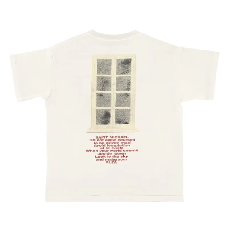 Unlock bold style with the White Saint Michael Door T-shirt. Featuring an eye-catching door graphic, this tee stands out in any crowd. It is crafted from soft, breathable cotton, perfect for all-day comfort. The crisp white backdrop enhances the striking design, making it versatile for casual outfits or layering.