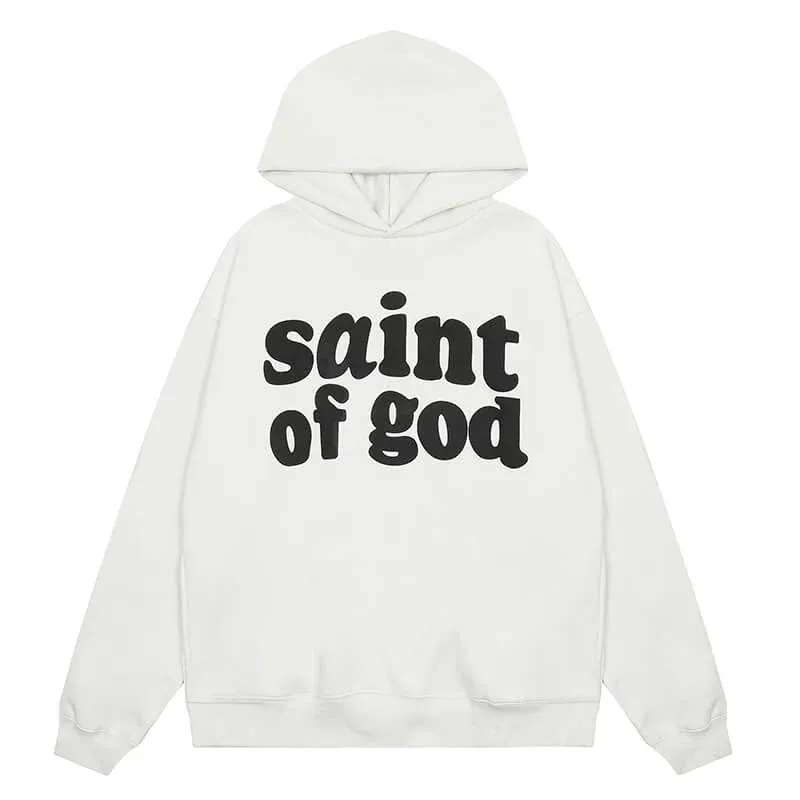 This White Saint Mxxxxxx x Fear of God Saint of God Hoodie stands clean and commands space. We used pure cotton that holds structure and wears with depth. Bold SAINT OF GOD lettering commands the front—no noise, just meaning. Elasticated cuffs and hem frame the shape, while the oversized hood calms the chaos.