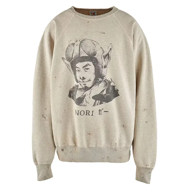 It’s cut from soft cotton with a ribbed hem and cuffs to lock in shape. The elastic neck gives just enough stretch without losing form. Easy to throw on, even easier to keep in rotation. This isn’t just another sweatshirt. It’s a Saint Mxxxxxx x Noritake Kinashi drop—meant to be worn, not saved.
